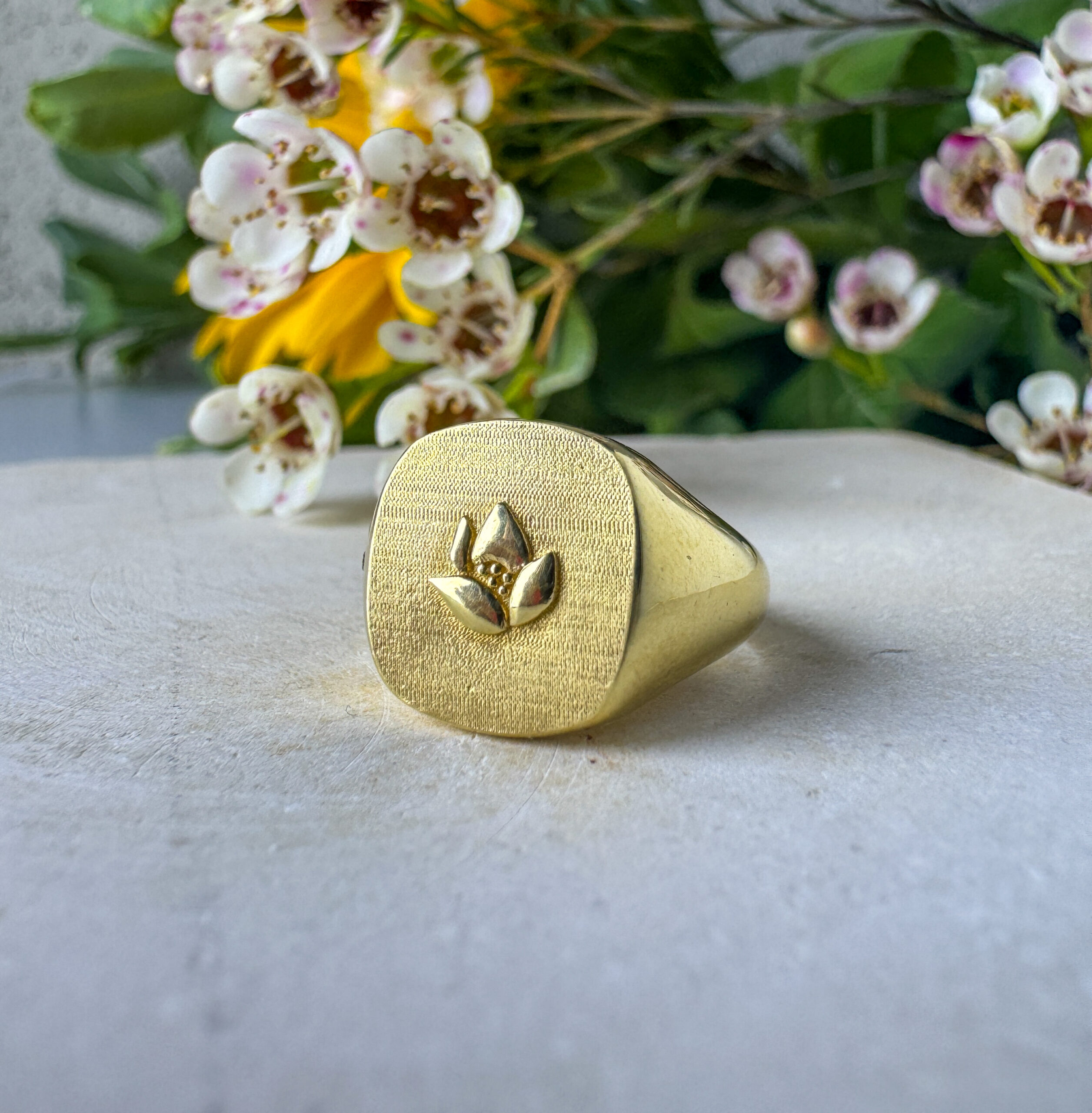 טבעת זהב וינטג' בסגנון חותם לוטוס עתיק 14 קראט