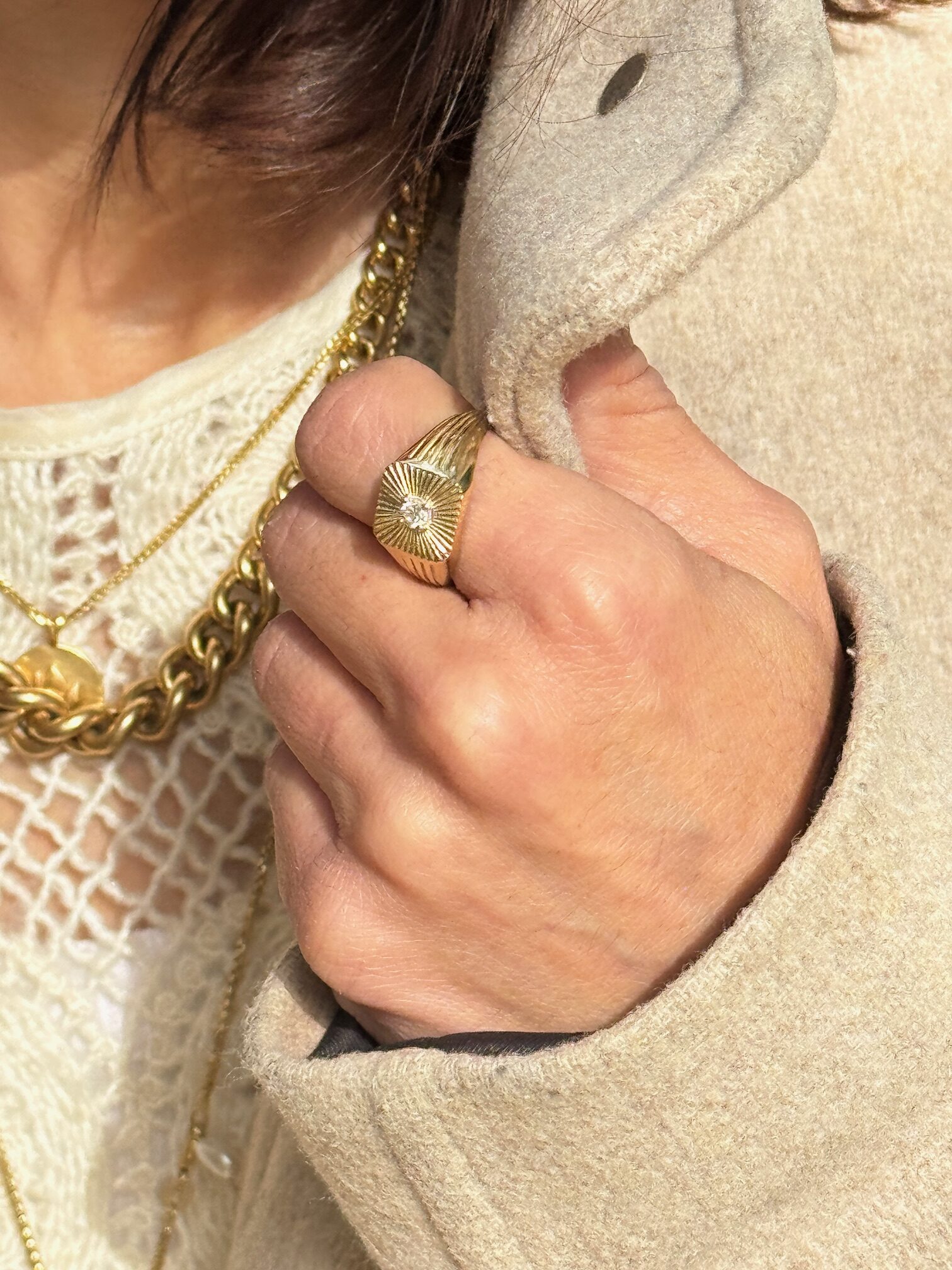 טבעת זהב חותם שמש