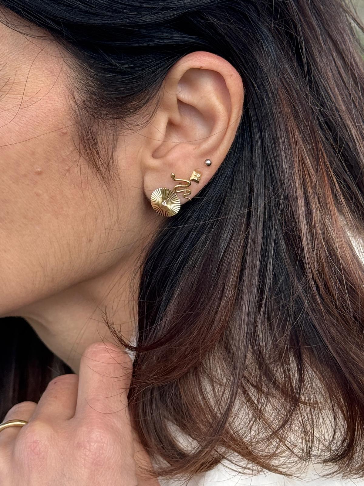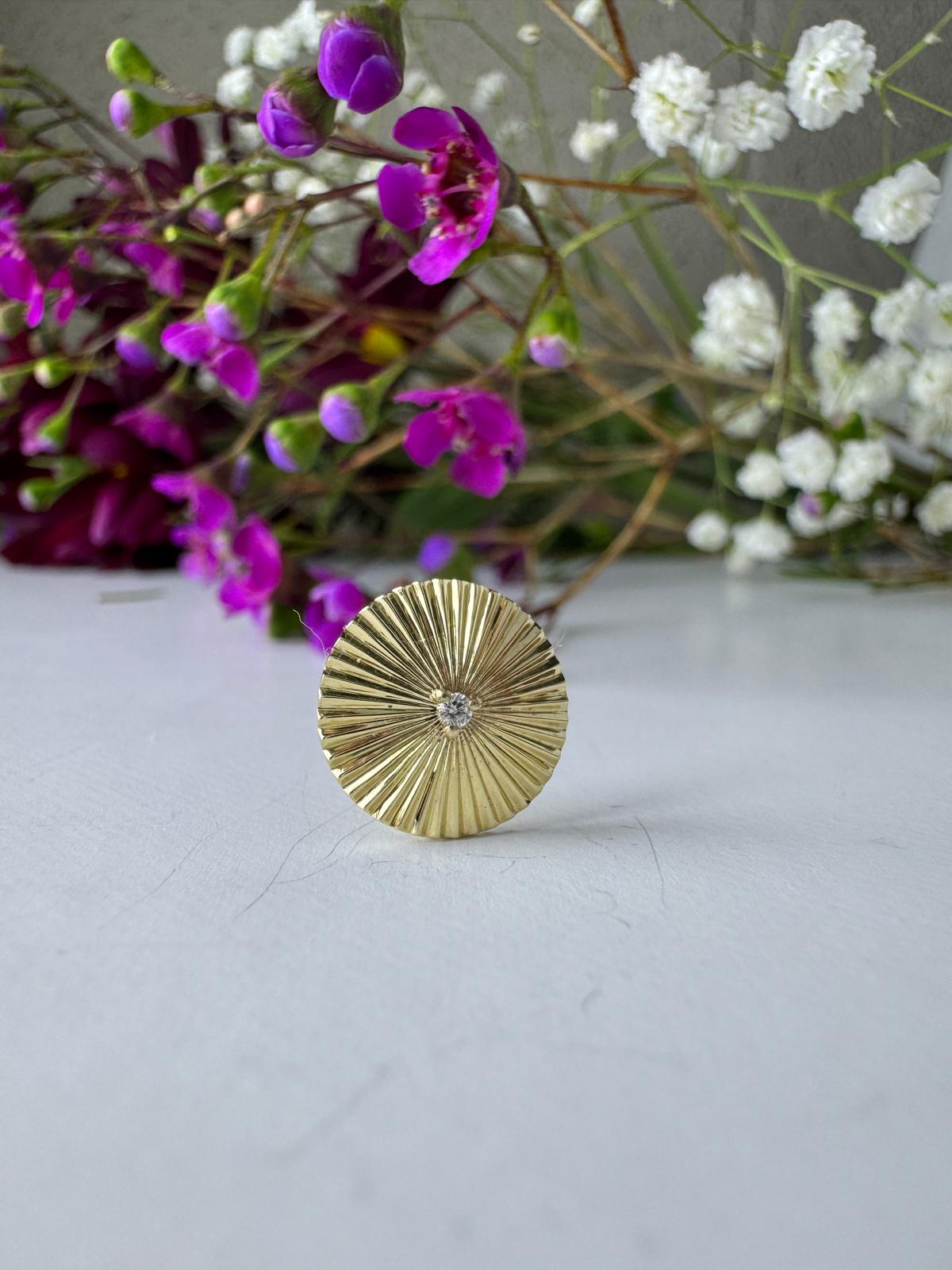 עגיל זהב 14 קארט בצורת שמש משובצת יהלום
