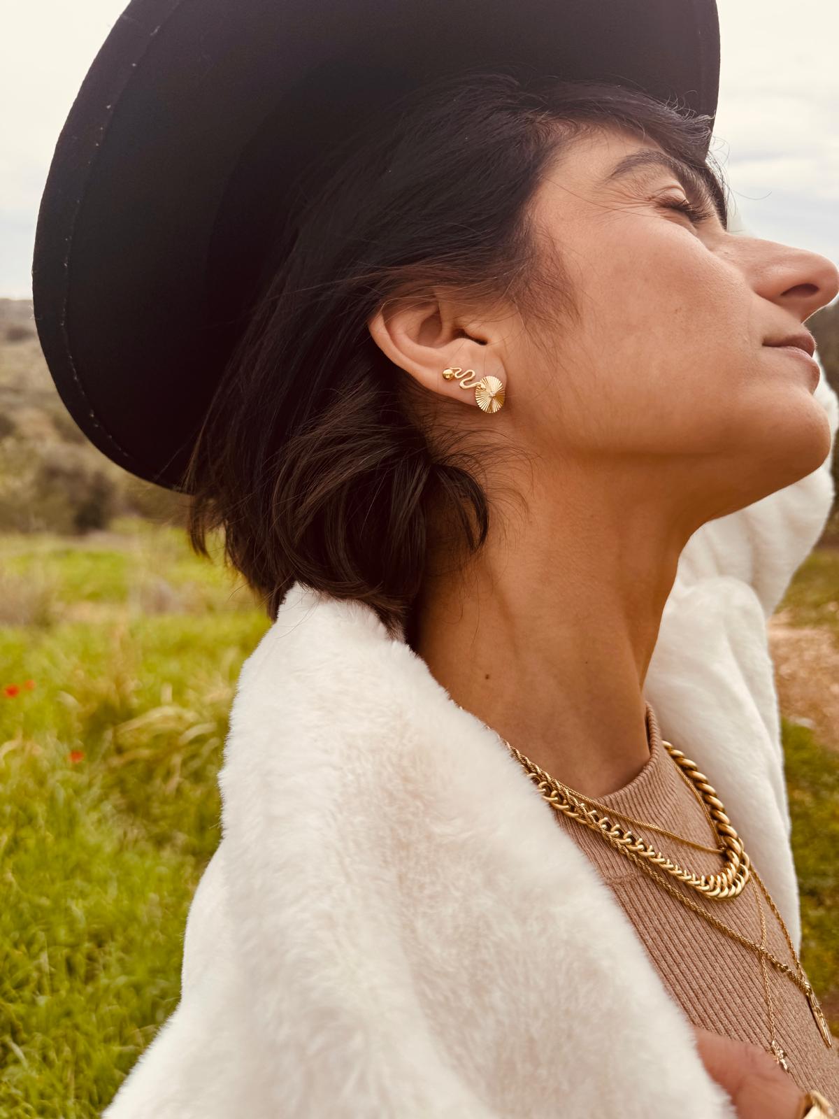 עגיל מקולקציית בראשית בבריאת המאורות הגדולים המאור הגדול – השמש סופגת עלבונה ואינה מגיבה, השמש מוארת כל הזמן לא משנה מה עובר עליה.