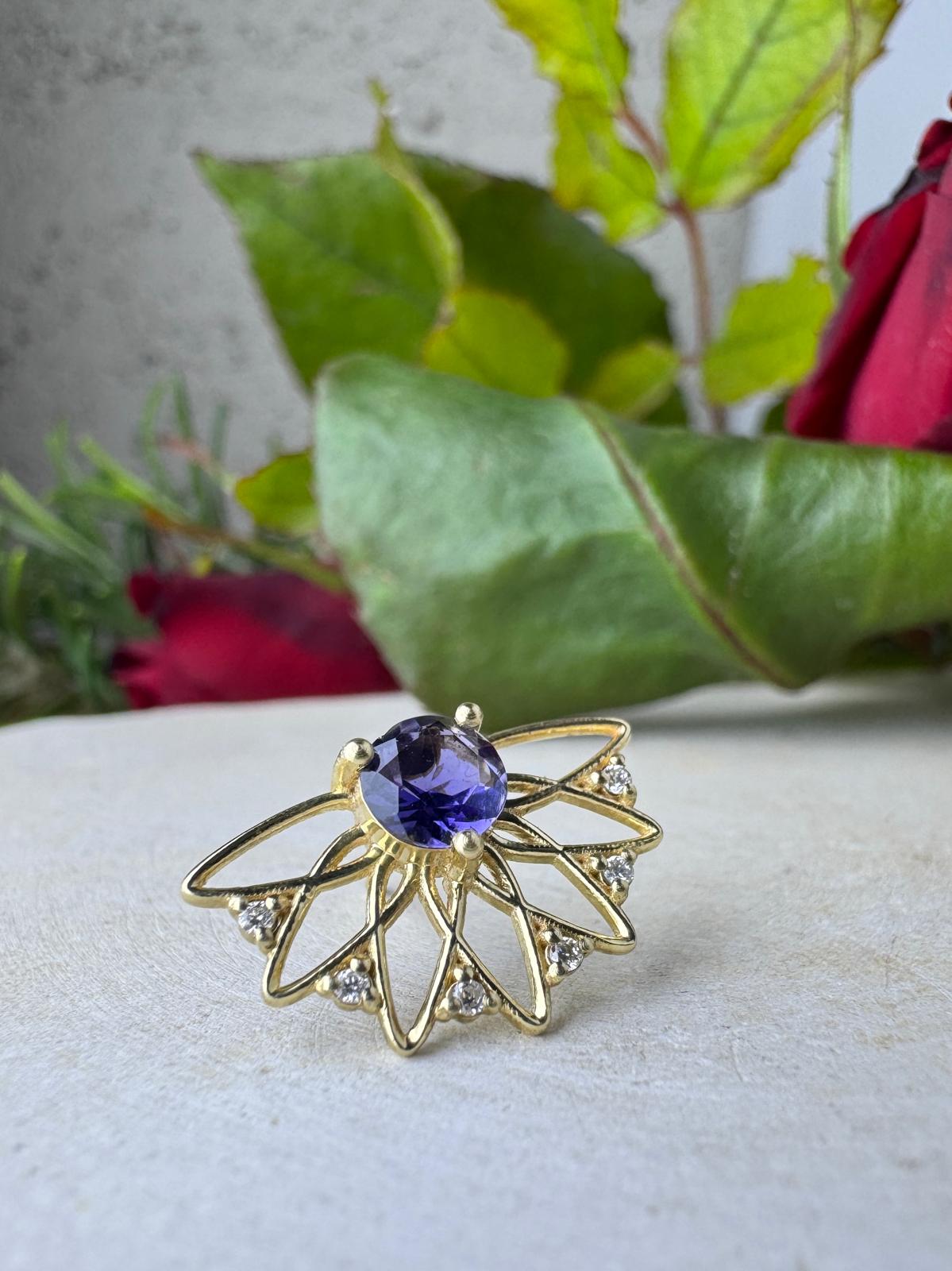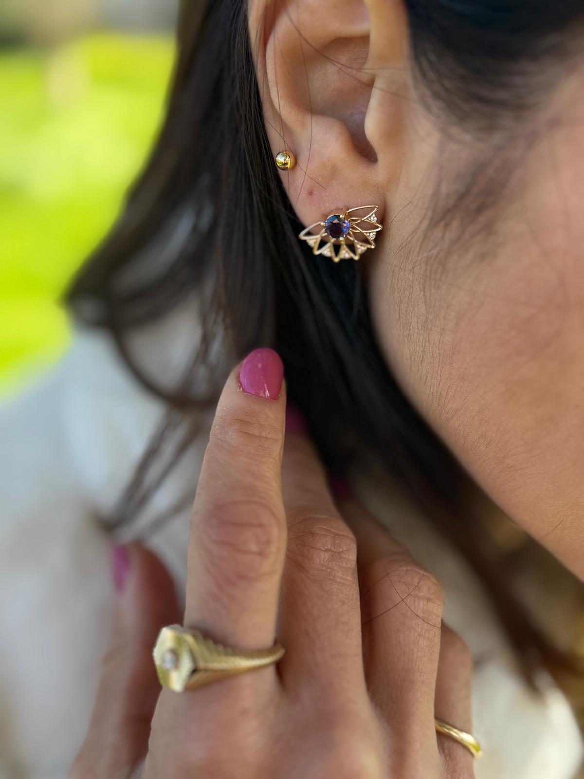 עגיל משובץ איולייט או טופז בייבי ובהילה 6 יהלומים טבעיים