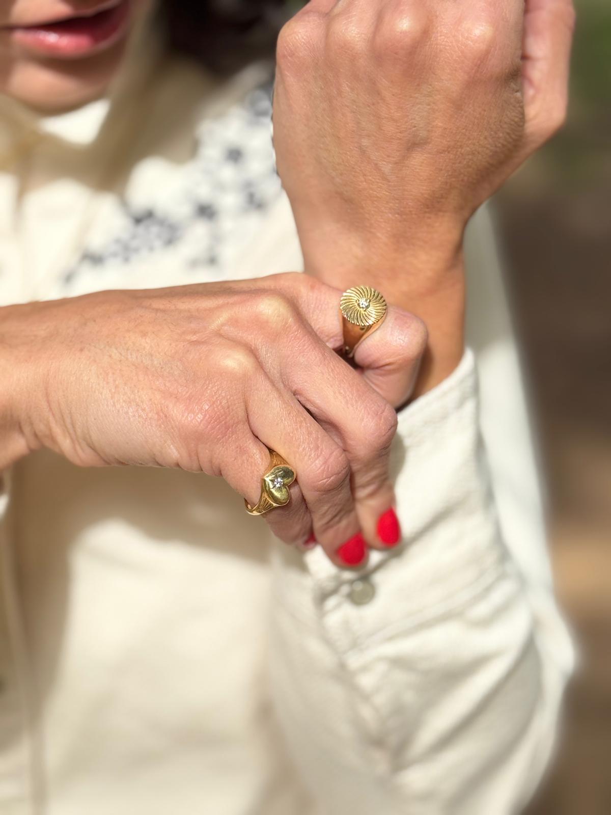 טבעת זהב חותם לב יהלום