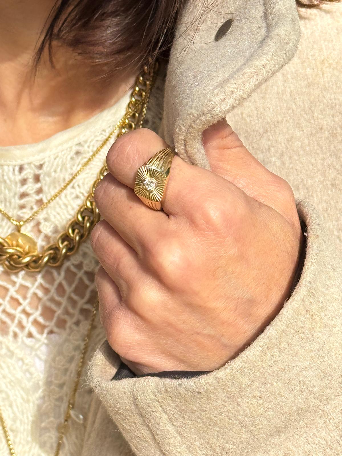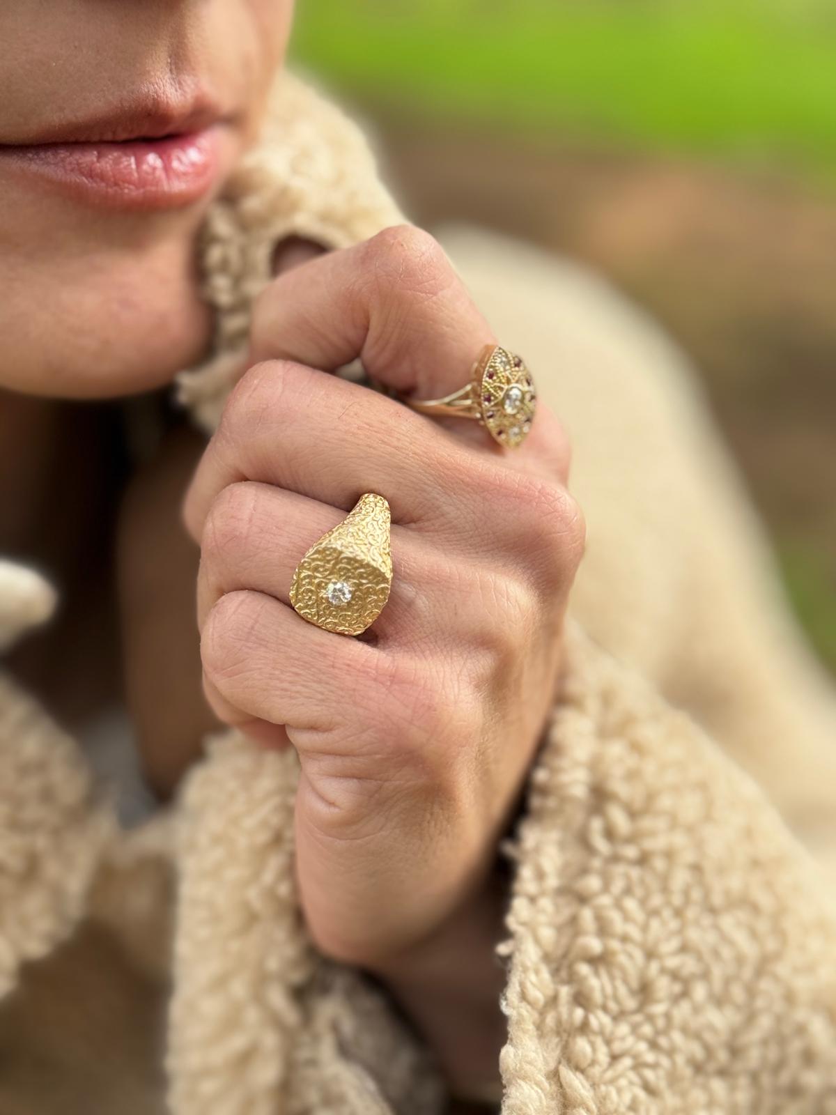 טבעת זהב חותם מעוף הציפור יהלום